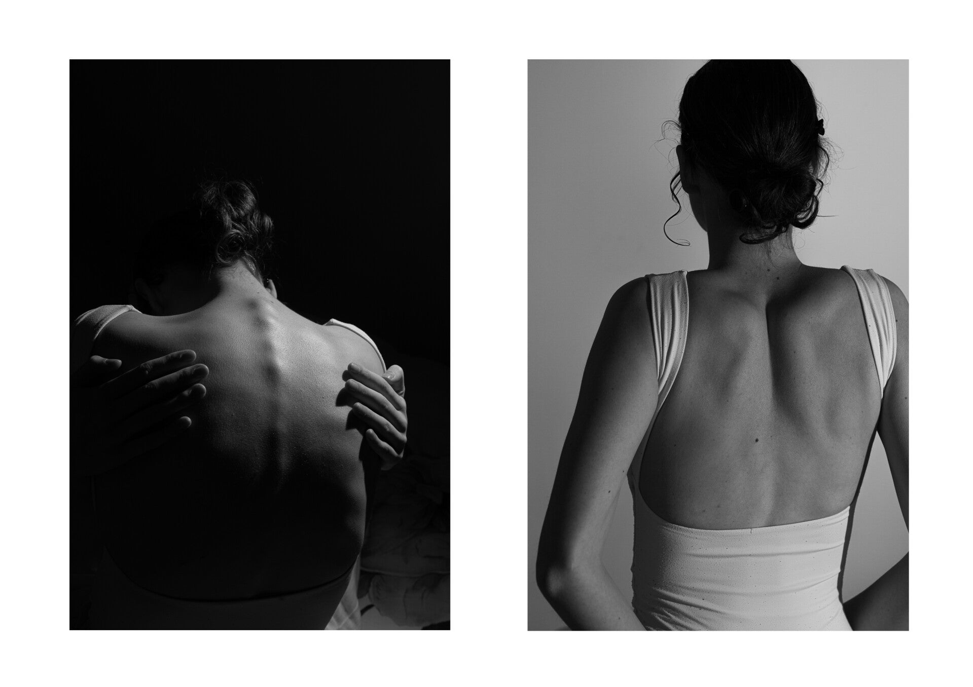 Voor deze opdracht maakte ik twee reeksen beelden: eenn met daglicht en een met kunstlicht. Het doel was het lichaam met licht te vormen, zodat schaduw en licht de vormen benadrukken